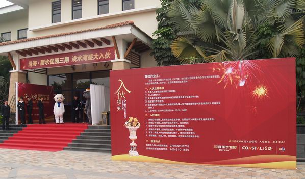 春暖花开,三月又是一个充满希望的季节。2011年3月26日,东莞沿海丽水佳园三期浅水湾迎来了入伙的大喜日子,现玚气氛浓烈,项目入口、销售中心、三期全新示范区都装扮一新,迎接业主办理入伙。