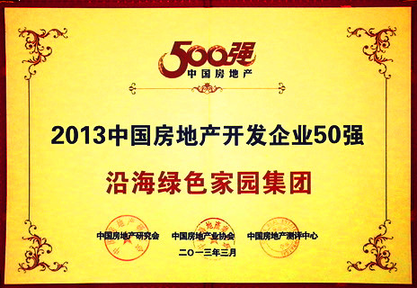 3月22日下午,由中国房地产研究会、中国房地产业协会与中国房地产测评中心联合举办的“2013中国房地产500强测评成果发布会暨500强峰会”在北京国贸三期举行,沿海绿色家园集团从参评的500余家企业中脱颖而出,继2012年后,今年再次入选 “中国房地产开发企业50强”。