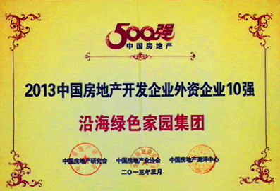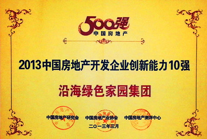沿海集团作为一家港资综合性投资控股公司, 成立23年来广泛地投资于中国境内的产业投资、金融、地产开发、运营服务与工程管理、健康住宅技术和能源开发与管理等不同产业,且在房地产价值链整合、商业模式与企业治理等方面屡有创新。基于此,本次大会还授予沿海绿色家园集团“2013年中国房地产开发企业创新能力10强”和“2013年中国房地产开发企业外资企业10强”两大荣誉。