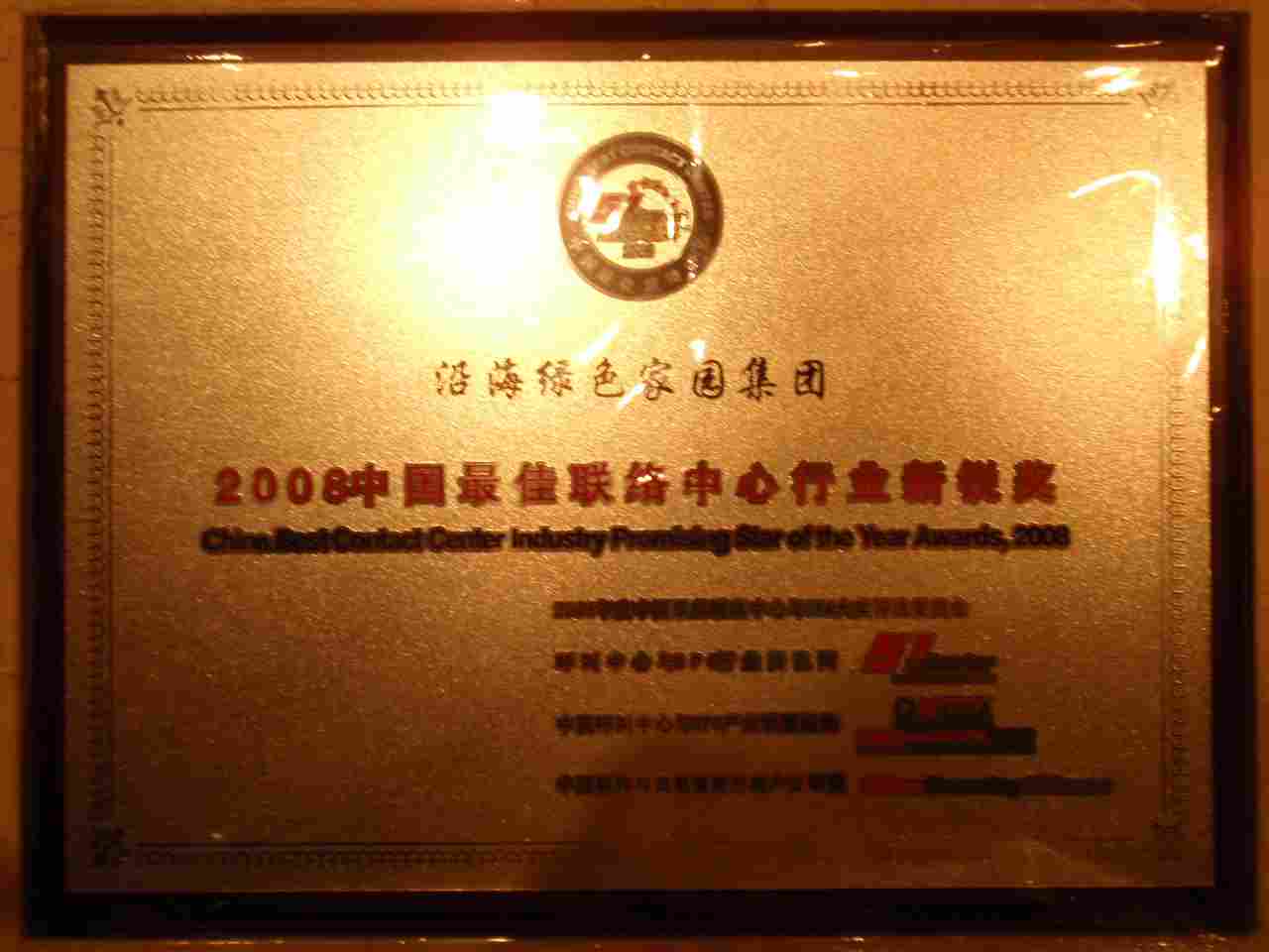 沿海400获得“2008中国最佳联络中心行业新锐奖”