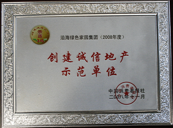 2008年,中国消费者协会的年主题为“消费与责任”。作为该协会主办的报纸,中国消费者报在今年社继续举办“3·15创建诚信地产示范单位”展示活动,邀请房地产市场中诚实守信、阳光销售的房地产企业参与,通过该活动展示活动树立地产界诚信守法的典型,促进房地产行业健康和谐发展。而沿海集团作为房地产行业中具备浓厚的社会责任感及诚信度的企业,获此殊荣实至名归。